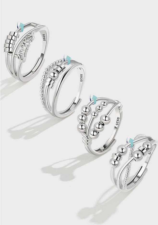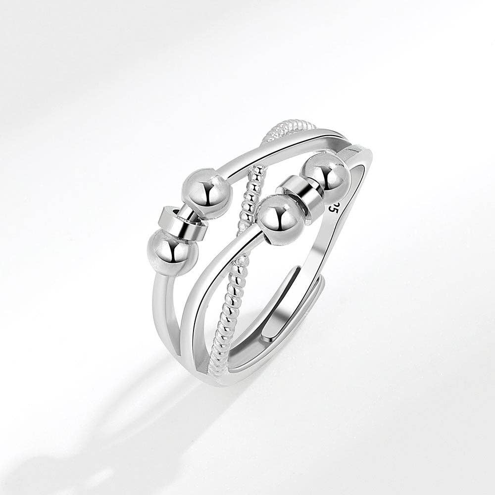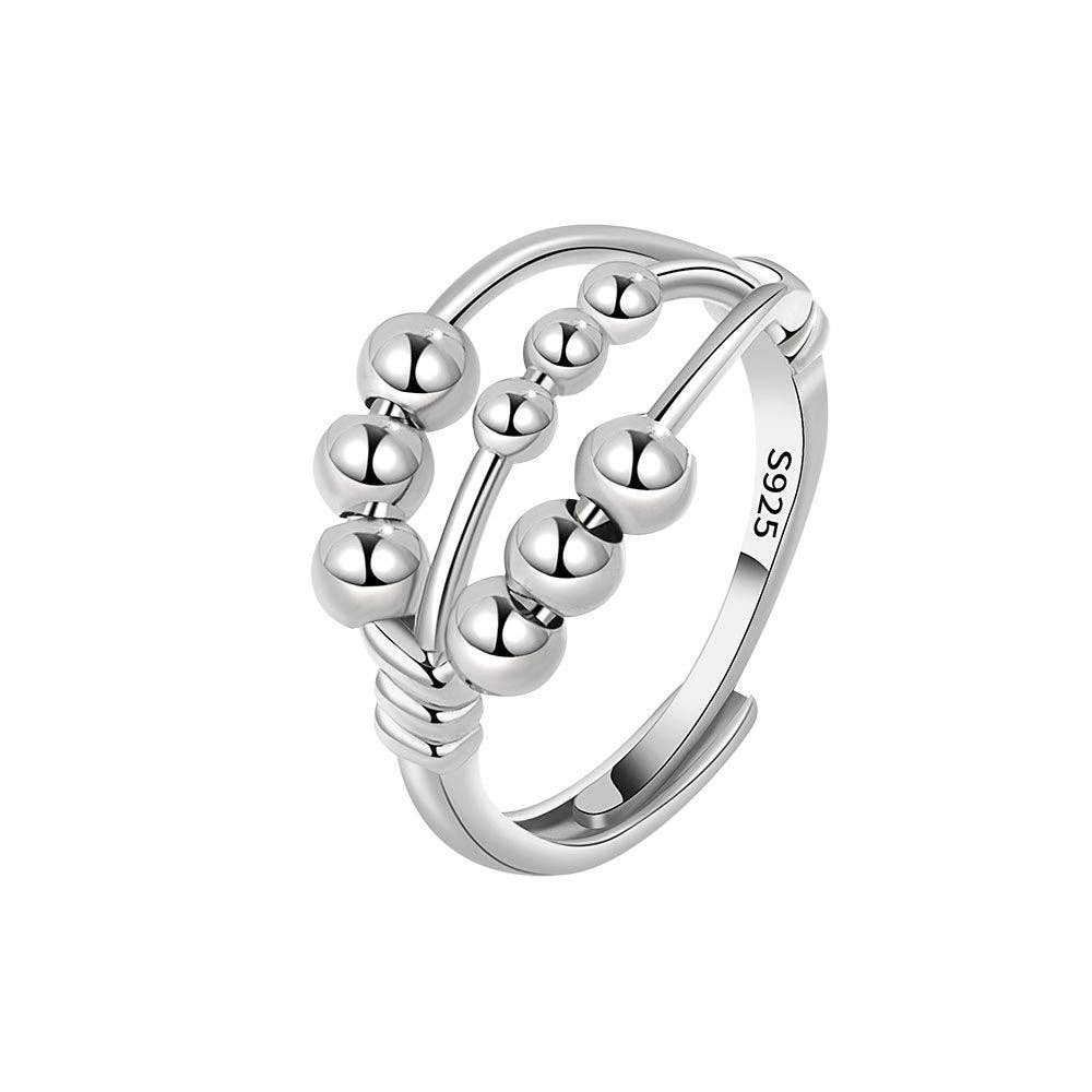 Bead Anxiety Fidget Spinner Ring in 925 Sterling Silver