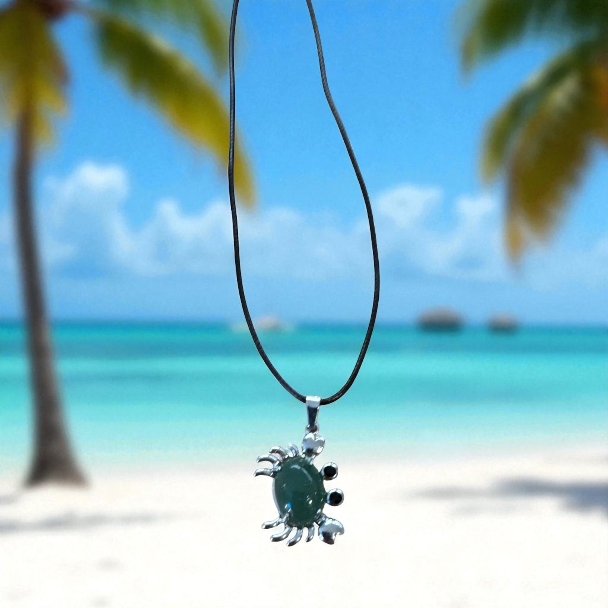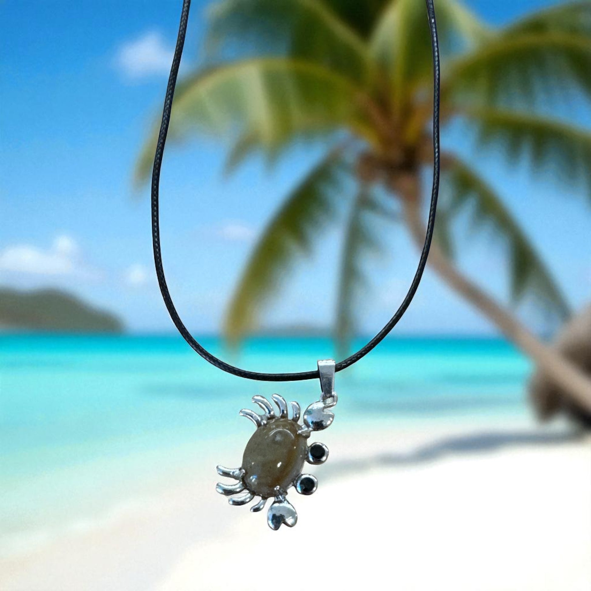 Dive into beachy bliss with this whimsical crab necklace, a seaside treasure crafted from a medley of ocean-kissed stones. Each colorful gem—from sun-drenched citrine to tidepool turquoise—forms the shell of a cheerful crab, its tiny claws poised as if ready to scuttle across the shoreline. The stones shimmer like sea glass caught in morning light, each one echoing the hues of salt, sand, and surf. Whether you're beachcombing or city-strutting, this playful pendant brings a splash of coastal magic wherever you roam.