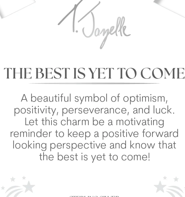 Best Is Yet To Come Sterling Silver Charm Bracelet- A beautiful symbol of optimism, positivity, perseverance and luck. Let this charm be a motivating reminder to keep a positive forward looking perspective and know that the best is yet to come!