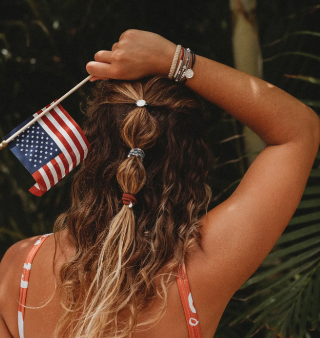 Our BRAVE set includes five hair tie bracelets in an exciting mix of reds, whites, and blues. The dazzling stars on the silver charms are the perfect reminder to be brave, have courage, and conquer the challenges ahead of us.