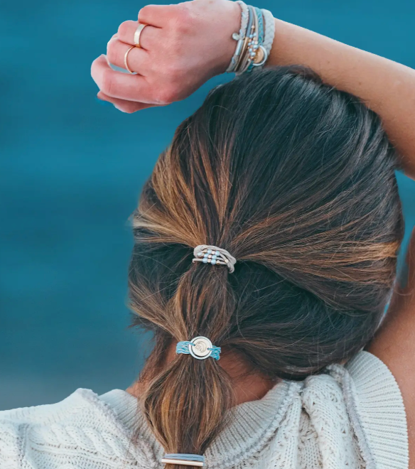 Our WONDER set includes five hair tie bracelets in gorgeous light neutrals. You will find pearls, golds, and silvers to make this set mix well with any other jewelry. A moon and stars on the charm will keep our sense of wonder alive.